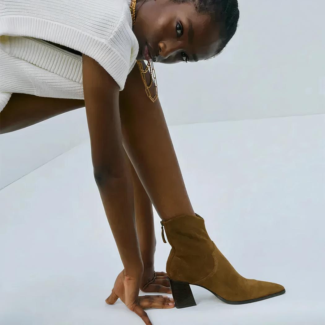 Découvrez le mariage parfait entre confort et élégance avec ces boots santiag en flanelle marron. La hauteur du talon est idéalement conçue pour allonger la jambe sans compromettre le confort, tandis que la fermeture éclair facilite l'habillage. Parfaites pour les femmes dynamiques qui ne veulent pas sacrifier l'élégance pour la praticité.
