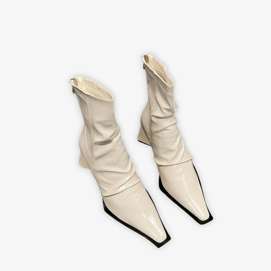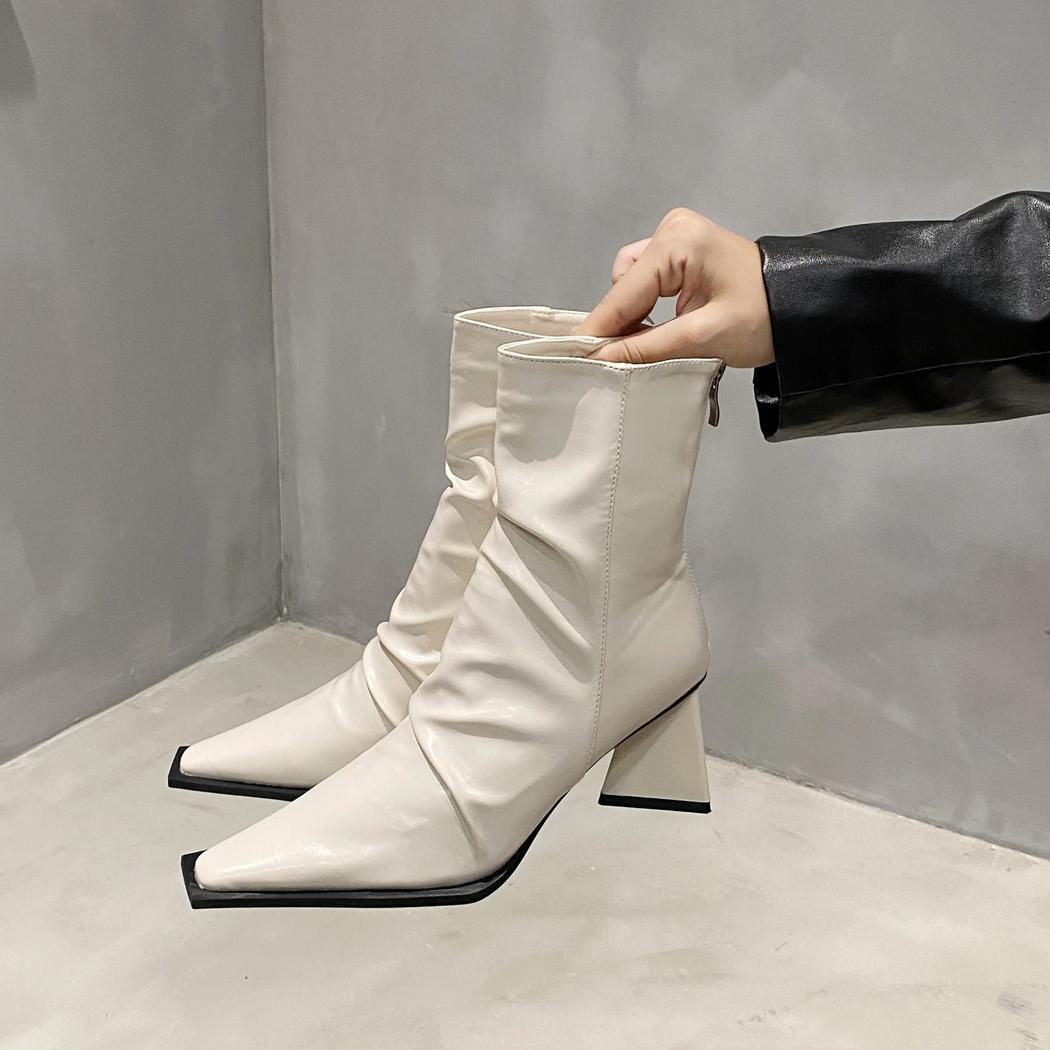 Sublimez votre style avec ces santiags blanches en simili cuir. Le design épuré à bout carré et la fermeture éclair discrète offrent une allure sophistiquée et contemporaine. Leur souplesse garantit un confort exceptionnel, vous permettant de les porter avec aisance du matin jusqu'au soir.