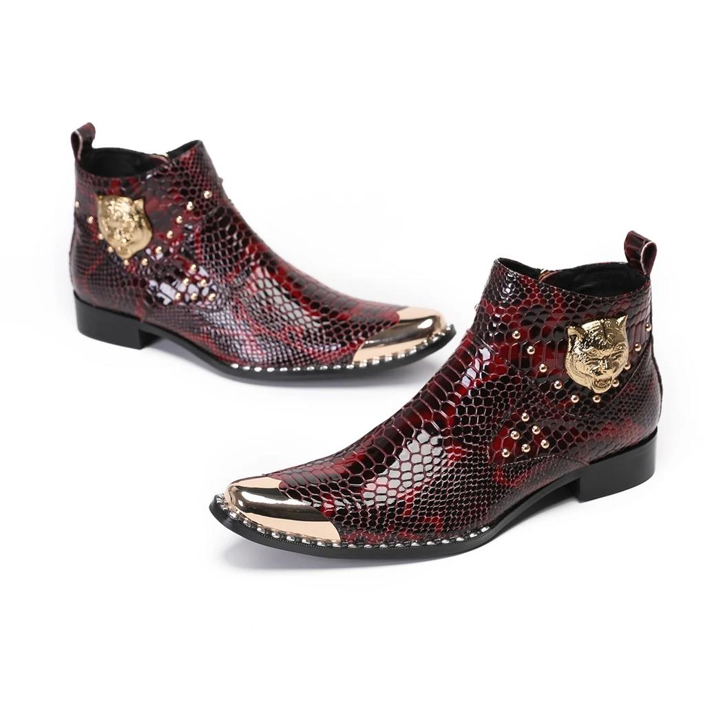 Ces santiags en cuir rouge au motif crocodile offrent une approche luxueuse de la mode masculine. Le bout métallique apporte une touche de modernité, tandis que la fermeture éclair garantit une fonctionnalité sans faille. Portez-les pour afficher un look sophistiqué qui ne manque pas de se démarquer lors d'événements spéciaux ou de rencontres formelles.