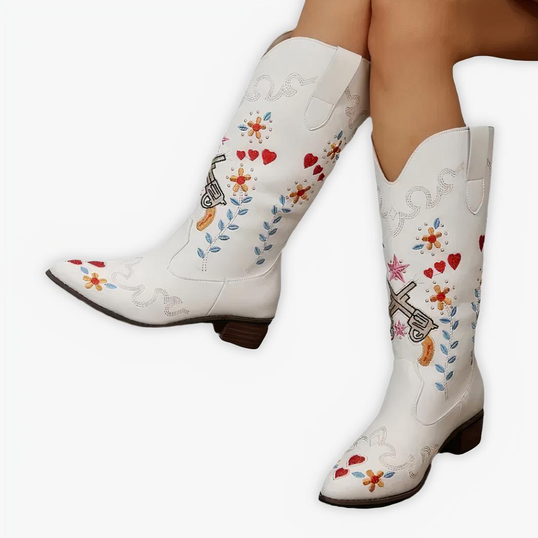 Santiag cowboy blanche avec broderie charmante