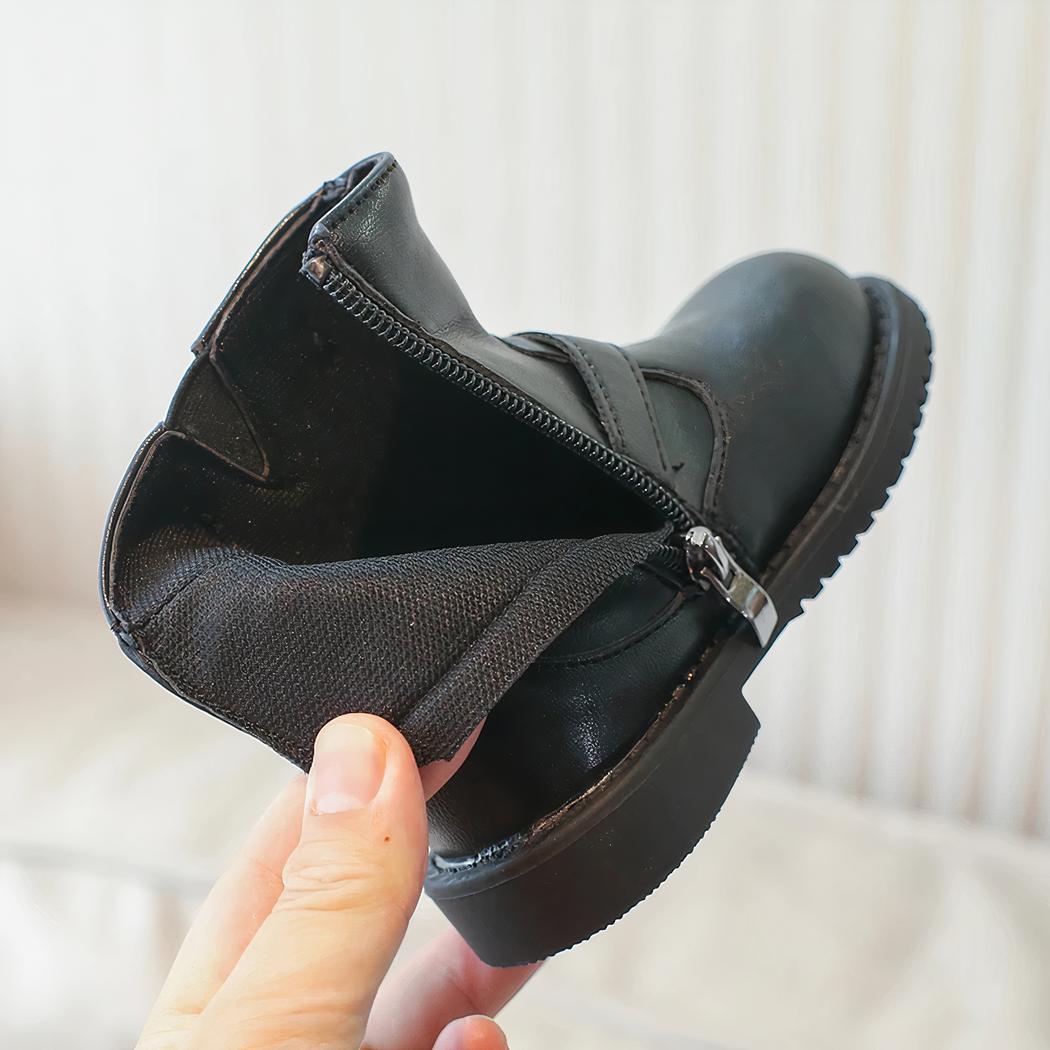 Découvrez le mélange parfait de fonctionnalité et de mode avec ces santiags à lanières pour fillette. Le simili cuir noir et les détails soignés assurent une allure chic, tandis que la construction légère et le petit talon garantissent le confort tout au long de la journée. Elles sont idéales pour les petites qui aiment se démarquer avec style.