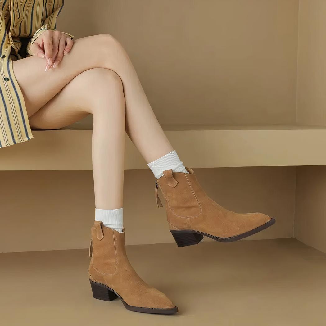 Le coloris camel de cette santiag cuir ajoute une touche de chaleur et d'originalité à votre tenue. Ce ton intemporel s'accorde parfaitement avec un jean brut ou une robe fluide, créant un contraste élégant et moderne. Misez sur cette santiag pour un style naturel et distingué qui ne passe pas inaperçu.