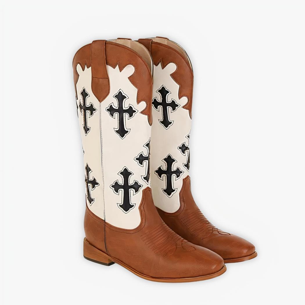 Les broderies de croix apportent une signature visuelle unique à cette santiag femme country marron. Ces motifs emblématiques captivent par leur raffinement et ajoutent une touche audacieuse à toutes vos tenues du quotidien, parfait pour un style qui ne passe pas inaperçu.