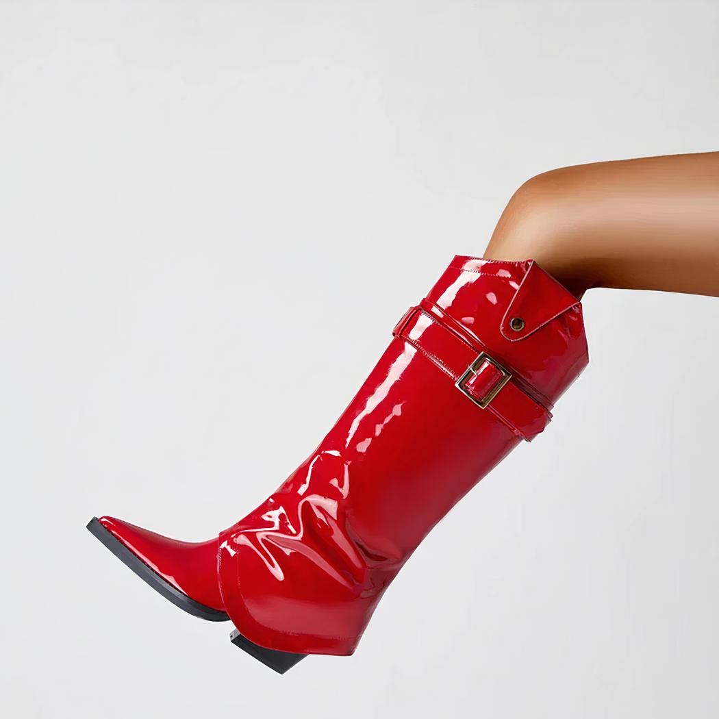 Conçues avec une grande ouverture pour le mollet, ces santiags rouges répondent parfaitement aux besoins des femmes recherchant une chaussure spacieuse et confortable. Leur structure souple s'adapte au contour de votre mollet, offrant un ajustement personnalisé sans comprimer ni restreindre vos mouvements. Le talon élève modérément haut votre stature sans nuire au confort, idéal pour les longues journées d'hiver.