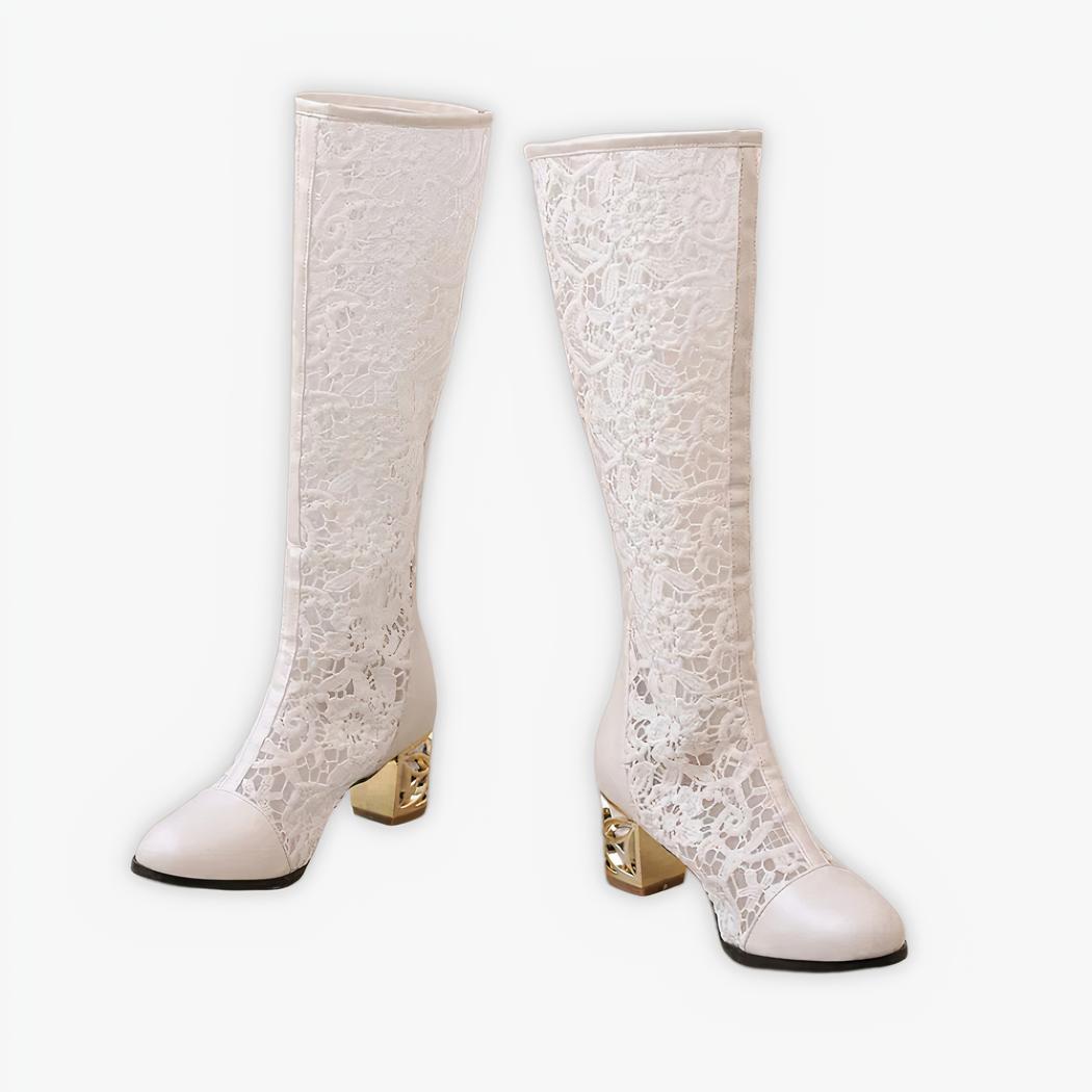 Santiag à talon blanche effet dentelle pour femme