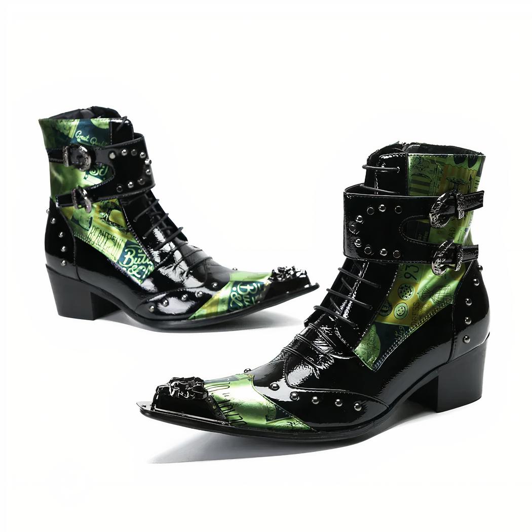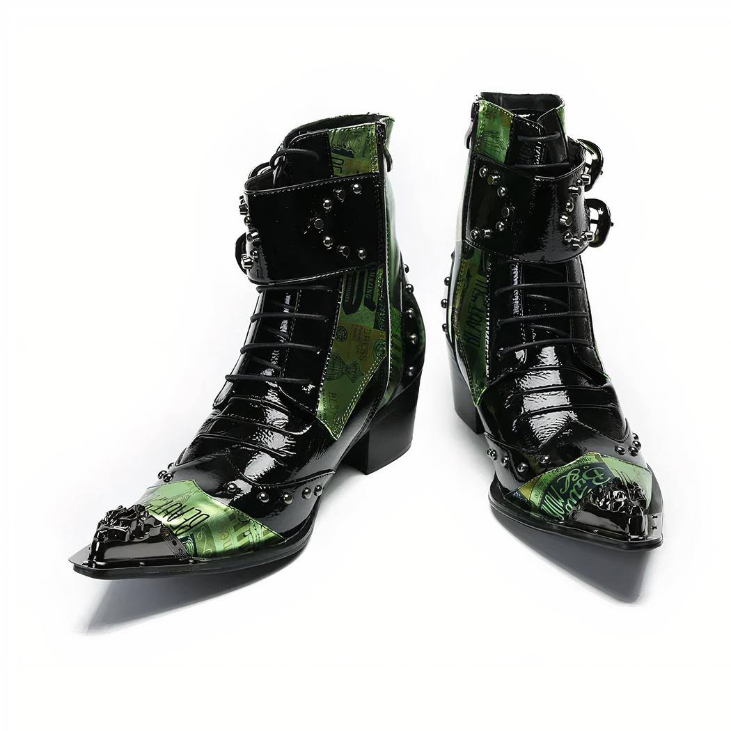 Santiag verte en cuir originale et cloutée pour homme