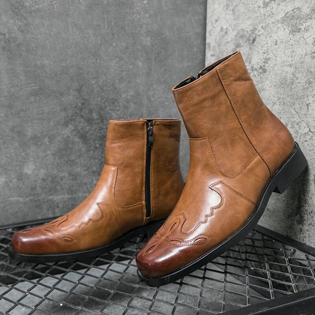 Le simili cuir marron souple de ces santiags assure un confort qui dure toute la journée, tandis que les motifs discrets ajoutent une touche d'originalité. Leur conception décontractée est idéale pour les hommes qui privilégient le confort sans compromettre leur allure.