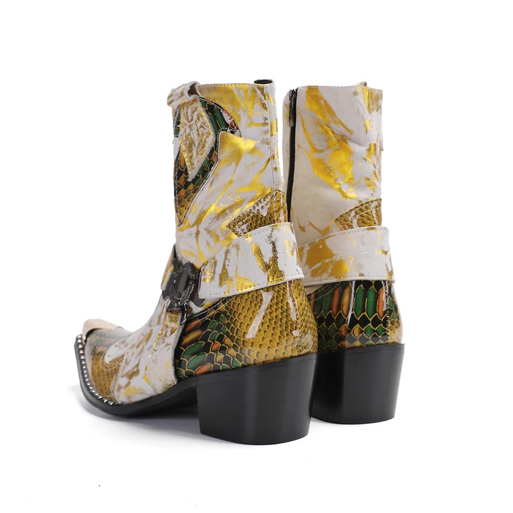 Santiag dorée motif python raffiné
