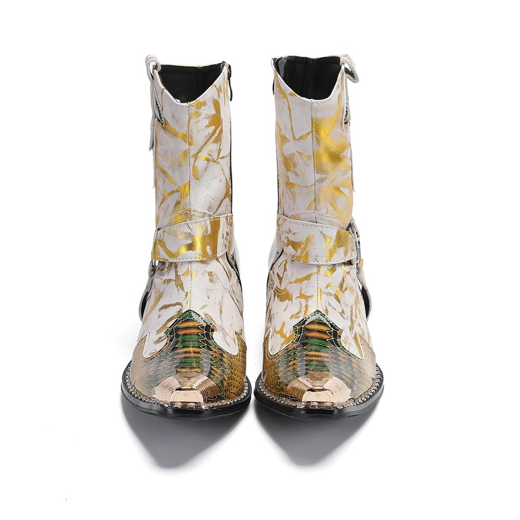 Notre santiag dorée motif python raffiné est plus qu’une simple chaussure, c’est une déclaration de style. Idéale pour les occasions spéciales ou pour rehausser votre quotidien, elle transforme n’importe quelle tenue en une véritable œuvre d’art. Faites sensation avec cette santiag dorée au look unique.