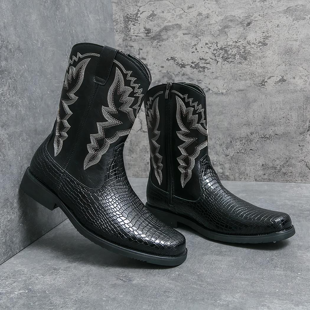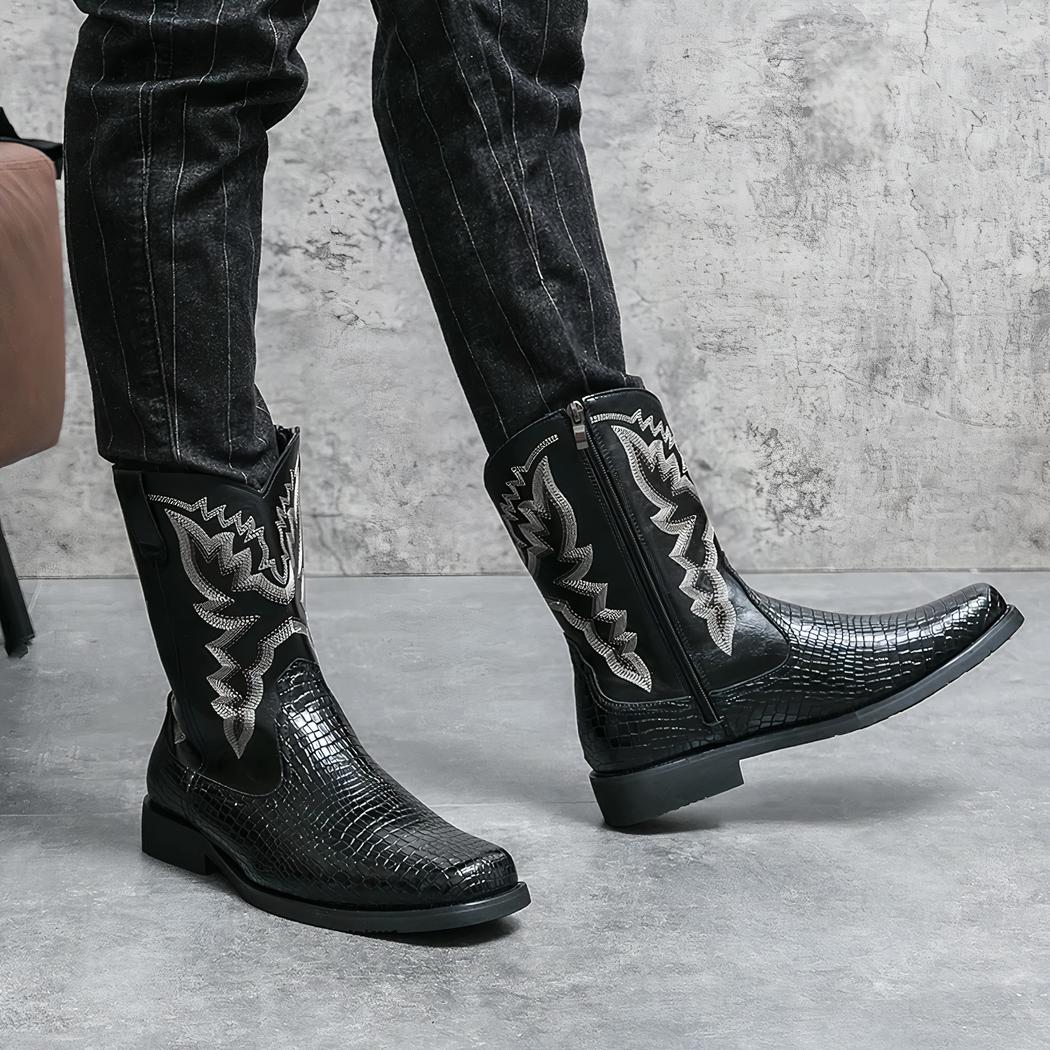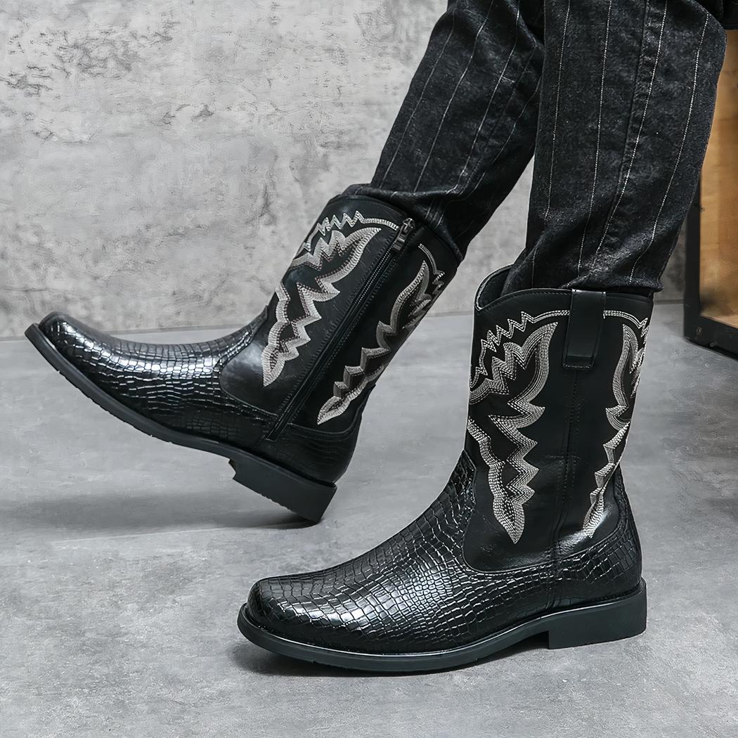 Les santiags homme élégantes effet crocodile ne passent jamais inaperçues. Leurs lignes audacieuses et leur texture exotique ajoutent une touche charismatique à votre style. C’est la paire idéale pour exprimer un esprit libre et une vision affirmée de la mode, tout en se distinguant avec subtilité et classe.