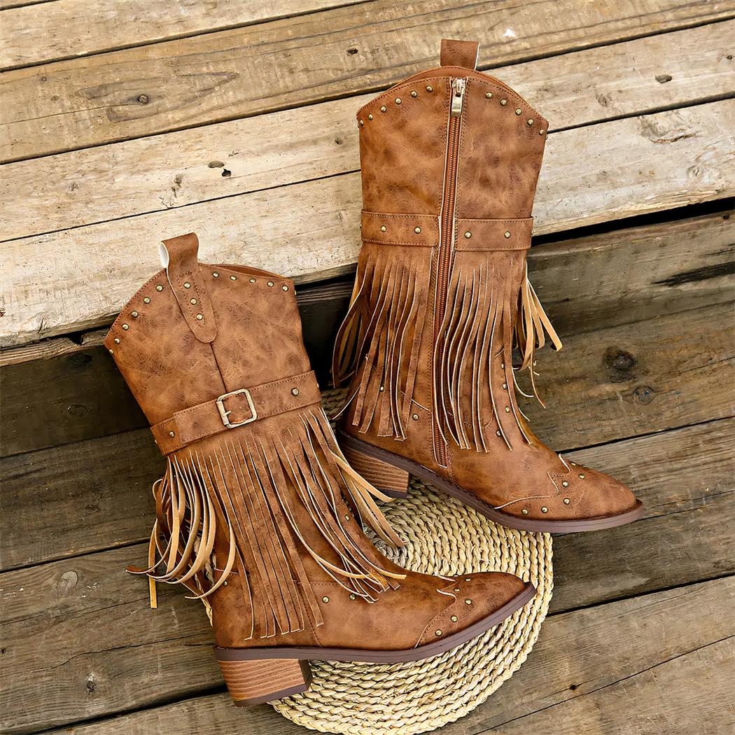 Santiag mi haute style cowboy à frange