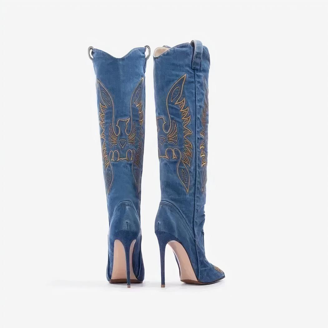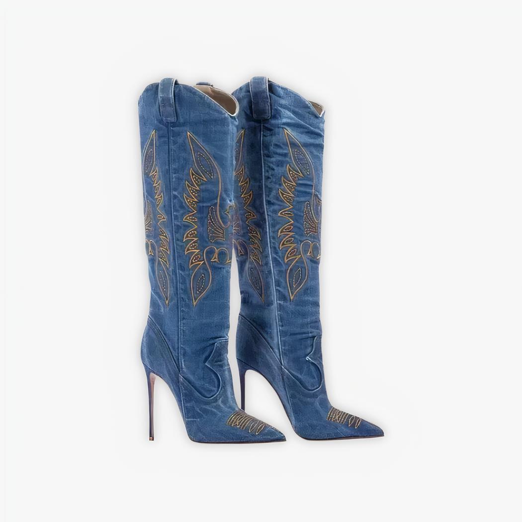 Santiag en jean et brodée à talon aiguille