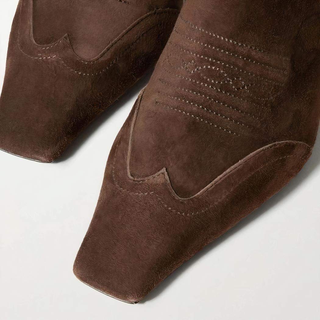 Santiag en daim marron rétro pour femme