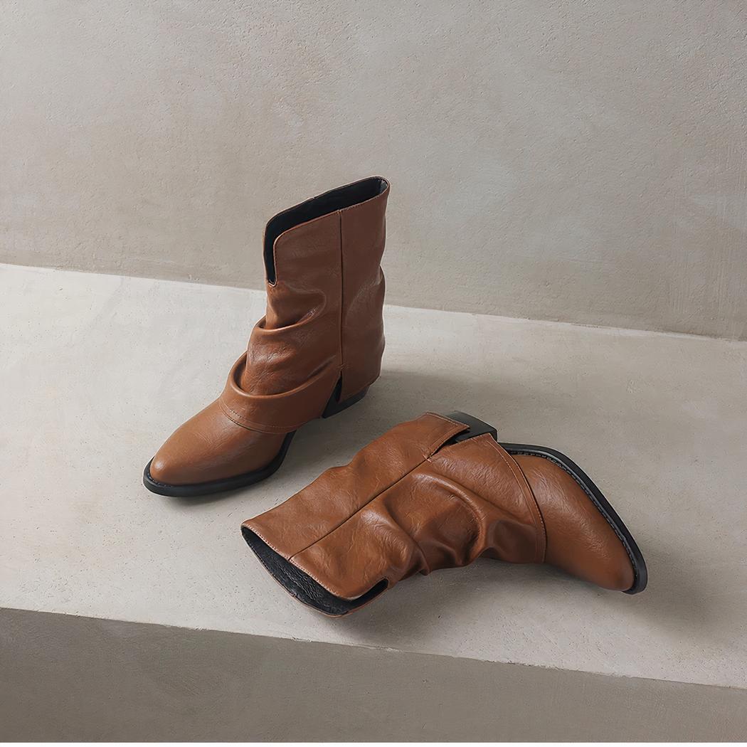 Ces santiags sont l'incarnation de la mode fonctionnelle. Leur style moderne, accentué par le simili cuir marron et le design souple, offre une approche rafraîchissante à la botte traditionnelle. Elles sont conçues pour la femme active qui ne veut pas sacrifier le style pour le confort, ou vice versa.